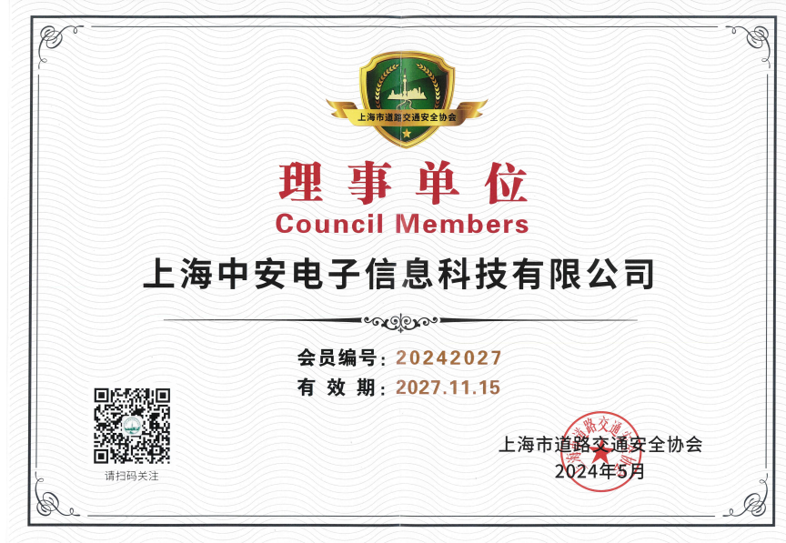 中安科技榮膺上海市道路交通安全協(xié)會(huì)理事單位稱號(hào)(2024-07-28)